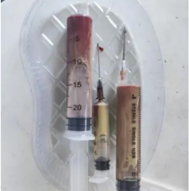 周彬教授在门诊详细询问南南发病经过并行鼻窦CT检查,发现南南的“肿眼泡”很可能是感冒后急性鼻窦炎引起的眶周及眶内感染。为其办理入院后进一步行眼眶磁共振检查,明确额部及左眼眶脓腔部位,予以穿刺抽出脓液超过40ml,南南眼球“胀”出来的感觉减轻了许多。