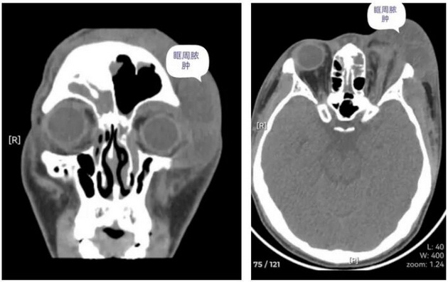 两周前,18岁的南南同学感冒后出现了流黄涕的症状,自觉鼻涕有臭味,伴有头痛症状,自行口服抗生素不见缓解。一周前擤鼻后自觉左眼部疼痛,继之出现眼睑肿胀,伴有眼球活动受限,于多家医院眼科就诊,均告知继续应用抗生素治疗,于是来到哈医大四院耳鼻喉门诊就诊,此时南南的左眼已肿得无法睁开,眼球感觉像要“胀”出来一样。