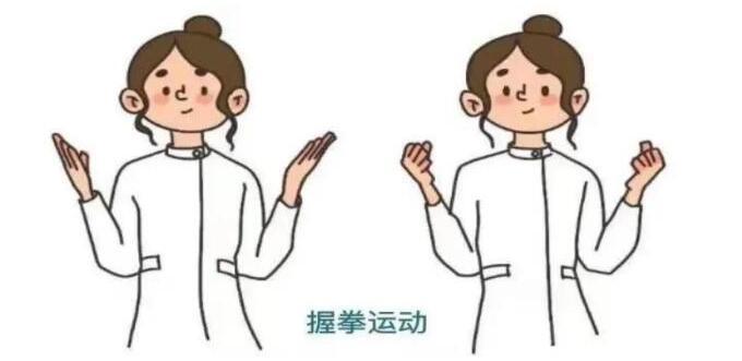 2.握拳运动:患侧五指用力伸直,再用力握拳,5-10分钟/次,3-4次/天。