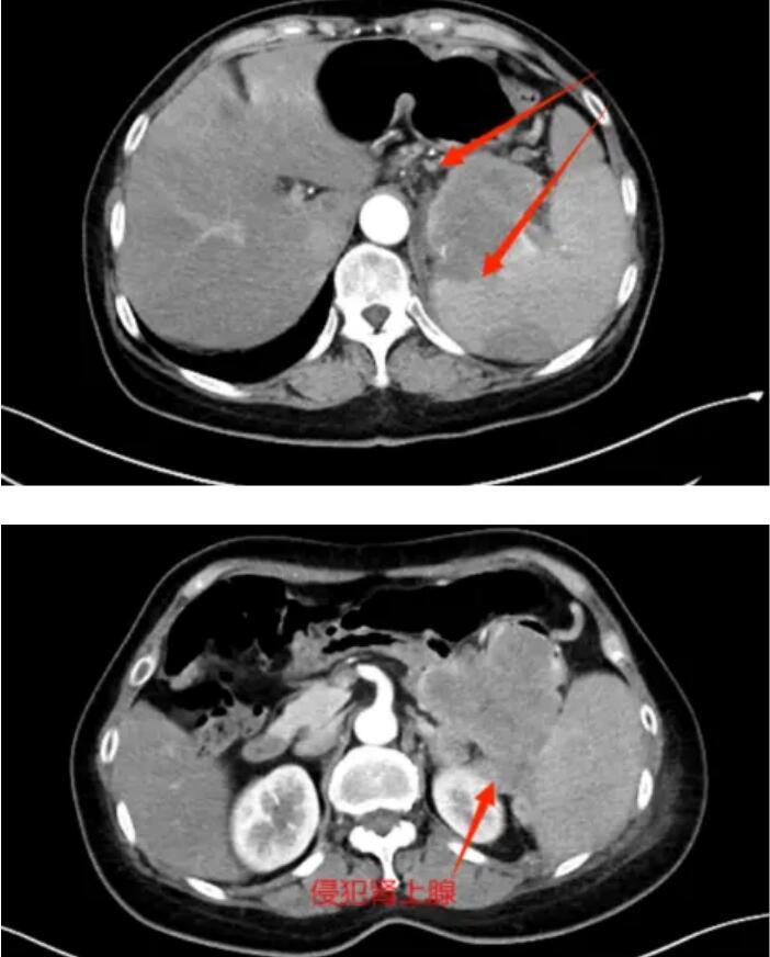 年过六旬的赵大娘(化名)近一月以来间断性出现左下腹疼痛,每次发作呈刺痛,伴食欲减退,排便困难,症状持续加重,门诊查CT回报:左上腹结肠占位性病变,考虑恶性,左肾上腺占位,考虑转移瘤可能(径线34mm*17mm),胃肠镜检查提示:“结肠肿物,结肠黏膜隆起”。赵女士家属拿到检查报告后心急如焚,经多方打听后,赵大娘来到了胃胰脾外科,希望得到救治。翟博教授经评估了患者影像资料后,考虑患者为胰腺体尾部的恶性肿瘤,并累及周围脏器。入院后的增强CT证实了上述诊断。