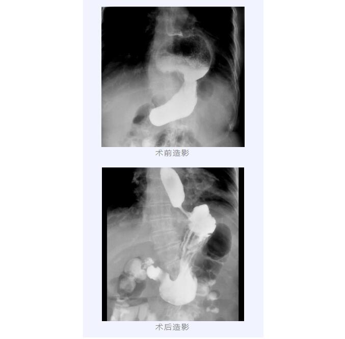 72岁老年女性患者,因呼吸困难在当地就医,经胸部CT等相关检查后肺部未发现异常,但食管裂孔处存在较大缺损,导致胃底经缺损进入胸腔,引发症状。患者来到普外科三病房找到刘昶教授,入院后经上消化道造影检查发现患者食管裂孔疝出现了嵌顿,胃底进入胸腔后无法还纳、肺部受压。完善术前准备,团队为患者行腹腔镜下食管裂孔疝修补、胃底折叠术,术中将胃底还纳回腹腔,发现食管裂孔处缺损达6cm,缝合关闭缺损后,考虑到患者嵌顿性疝可能出现感染,术中应用生物补片修补食管裂孔,进一步保障了手术的安全性,并行胃底折叠抗返流手术,手术过程顺利。术后第3日患者进食,第7日复查上消化道造影显示恢复良好,呼吸困难症状得到缓解。