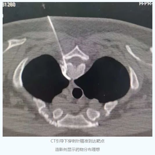 周华成主任团队制定了详细的手术方案,首日进行了CT引导下胸交感神经麻醉测试,如麻醉测试后上肢皮肤苍白、发凉、疼痛等症状减轻,第二日行双侧胸交感神经毁损术。姜女士按照术前既定方案顺利完成了测试和手术,整个手术全程在局麻下进行,耗时约半小时,仅用两根0.7毫米的穿刺针便完成了手术。术后即时,患者双手掌发热红润、疼痛消失,姜女士满颜欢笑的送上锦旗对周华成主任表示衷心的感谢。