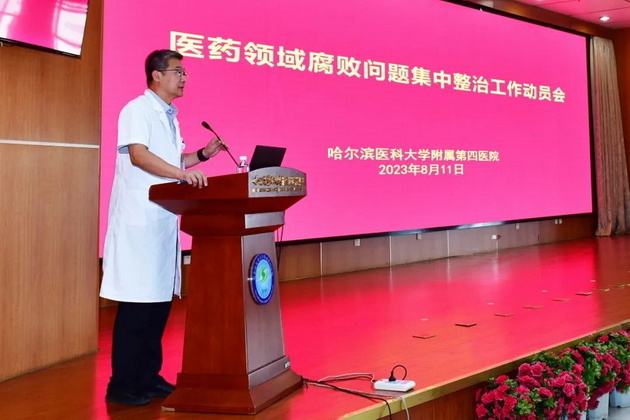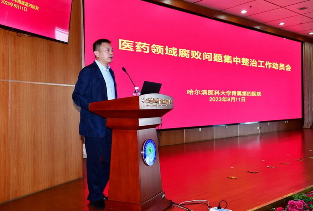 8月11日下午,哈医大四院召开医药领域腐败问题集中整治工作动员会,医院领导班子、临床科室负责人、护士长、职能科室负责人参加会议。会议由吴江副院长主持。