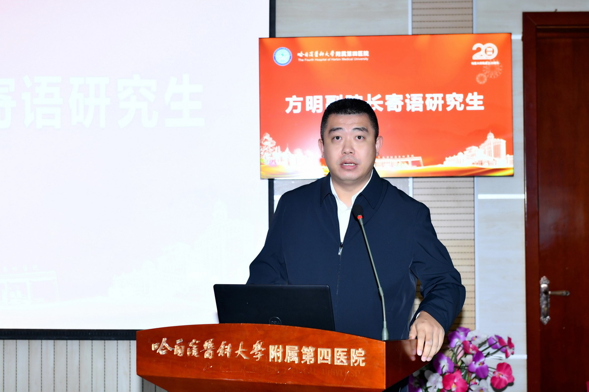 哈尔滨医科大学副校长许超千,大会主席、哈医大四院院长刘明,哈尔滨医科大学研究生院副院长方明出席活动并致辞。论坛由哈医大四院副院长郭劲松主持。