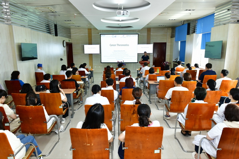 陈小元教授的报告从核素偶联药物入手,对核素药物研发的重要环节进行了细致介绍,同时讲授了基因/药物的纳米载体在多种肿瘤中的诊断和治疗应用,分享了自己对纳米药物发展方向的理解。在交流互动环节中,陈小元教授热情地为现场师生们答疑解惑,并对核药产业的现状和前景展开了交流,现场学术氛围浓厚。