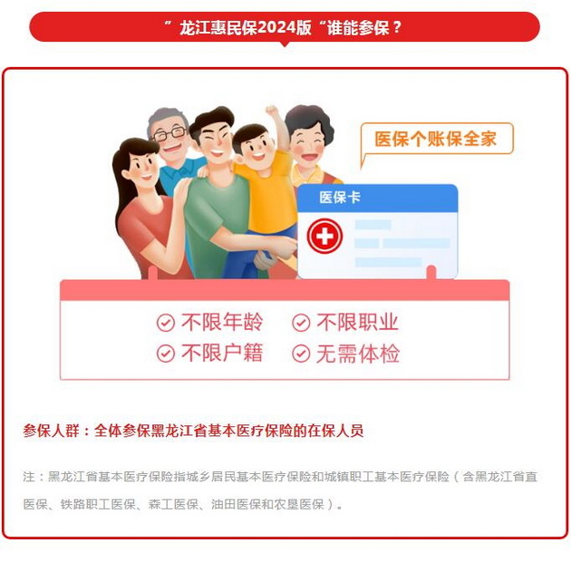 民生冷暖,枝叶关情!医疗保障关乎民生福祉,是老百姓抵御疾病风险和消除家庭后顾之忧的根本保障。“龙江惠民保2024版”作为一款人人买得起的惠民保障,参保门槛低、保障全面、保额高,受益人群覆盖各个年龄层,能够有效减轻参保人高额医疗费用负担。