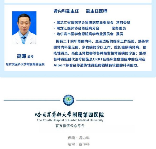 关注“哈医大四院”公众微信号,选择“挂号”进入界面“预约挂号”。在“南岗院区”中进行预约,选择“肾内科”。
