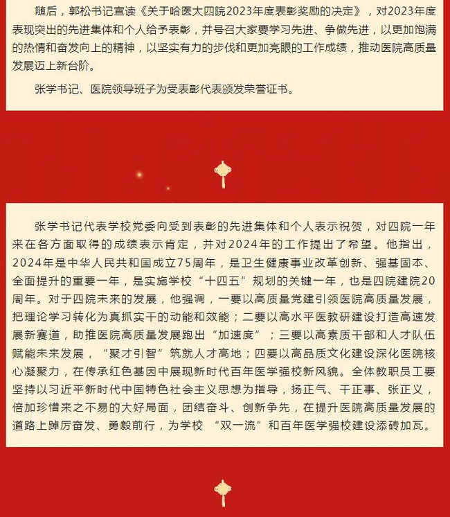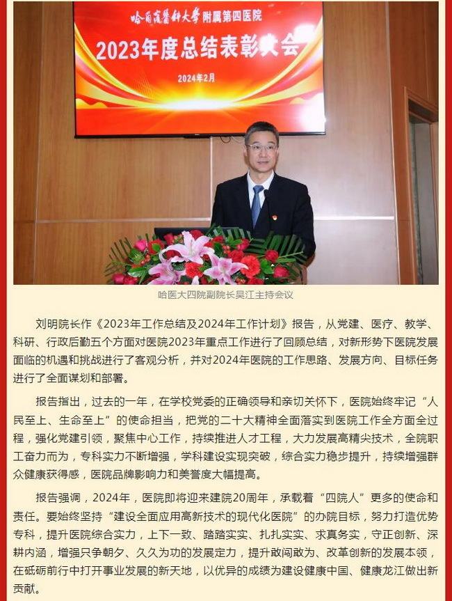 哈医大四院召开2023年度总结表彰大会