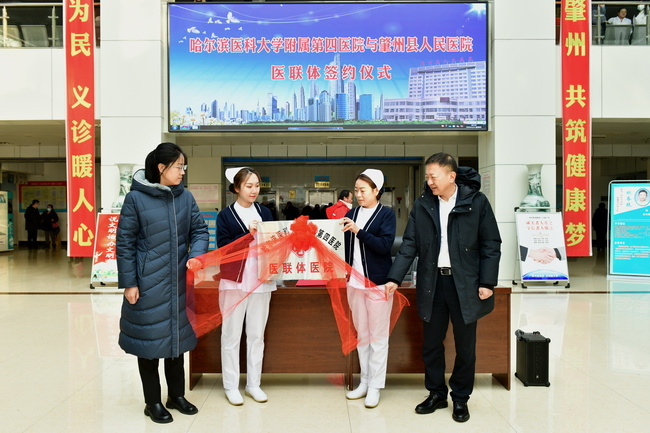 哈医大四院院长刘明与肇州县政府副县长樊微为“医联体”揭牌