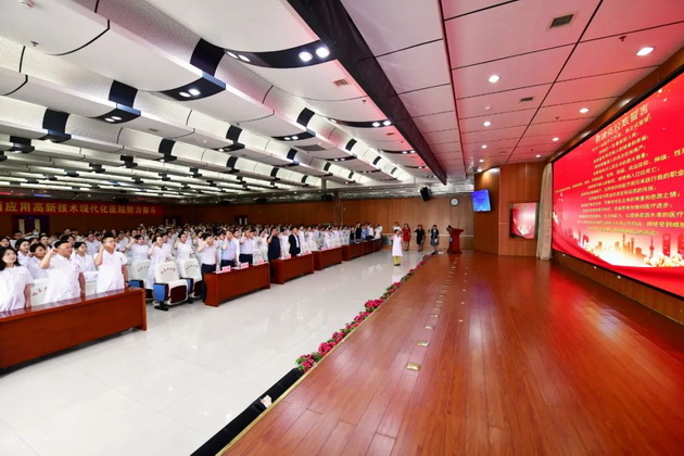 随后,朱丽影教授以《医疗&科研,伦理先行》为题、以自己为例,讲述医疗行业中的伦理遵循、合理用药、科研研究中的伦理遵循等,教导新入职员工一定将优良作风传承下去,凝心聚力,弘扬“明德至善、博学至精”的院训。授课后,朱丽影教授作为领誓人带领所有参会人员宣读希波克拉底誓言。