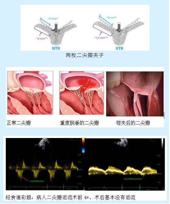 术中哈医大四院心内科张明宇主任团队和心内超声室薛莉教授、麻醉科高大鹏教授、中心导管室郭莹团队医护人员密切配合,应用经食道彩超术中反复评估返流位置、瓣叶脱垂、返流程度和跨瓣压差,并进行反复调试夹子位置后,置入两枚二尖瓣夹,大夹子XTR夹持住瓣叶穿孔位置和部分脱垂,小夹子NTR和XTR协同夹持住脱垂瓣叶,术中测试病人二尖瓣返流完全消失,肺静脉返流完全消失,二尖瓣压差满意。术后即刻病人麻醉复苏,拔出气管插管,返回心内科普通病房,第二天病人就可以下地活动,术后老人高兴地说:整个治疗过程一点也没有痛苦,术后胸闷症状明显缓解,以往就像压在心前区的一块大石头现在被移走了。