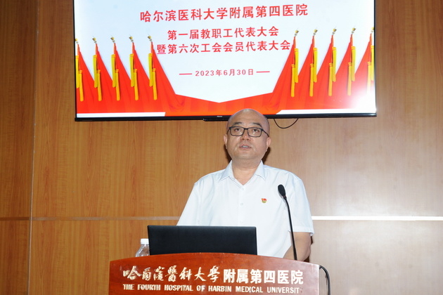 6月30日下午,哈医大四院第一届教职工代表大会暨第六次工会会员代表大会在诊断综合楼十二楼会议室隆重召开,院领导班子、教职工代表、列席代表等160人参会。会议由党委副书记兼工会主席赵羽主持。