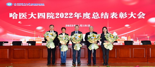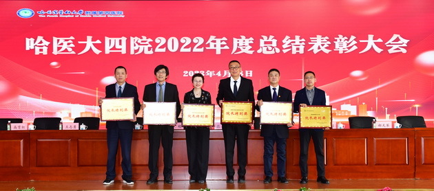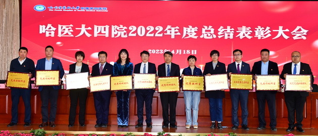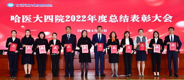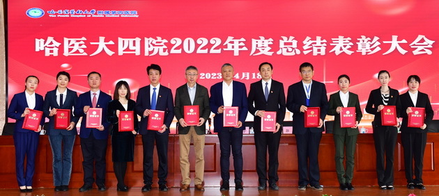 为全面总结2022年医院各项工作完成情况,擘画医院2023年发展蓝图,4月18日,哈医大四院召开2022年度总结表彰大会。哈尔滨医科大学党委书记张学院士出席会议并讲话,哈医大四院刘明教授代表医院汇报《2022年工作总结和2023年工作部署》,党委书记郭松教授宣读《关于哈医大四院2022年度表彰奖励的决定》。