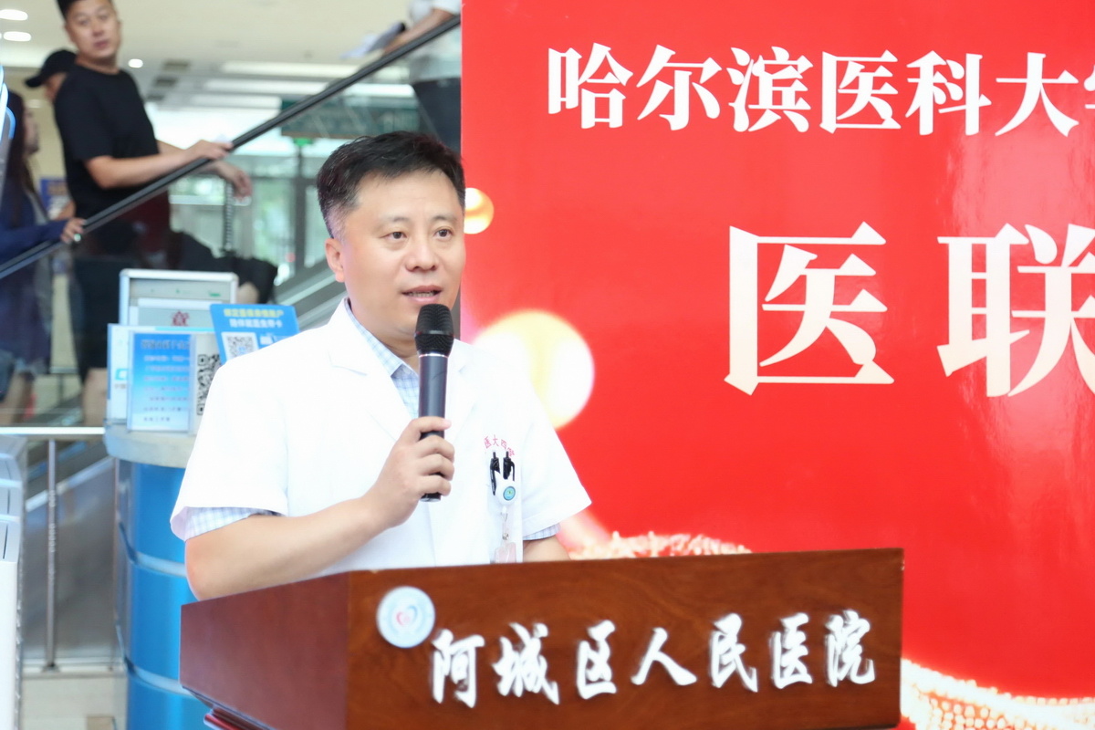为深入推进我省医联体合作和优质医疗资源下沉,提升基层医疗卫生服务能力和医疗技术水平,满足当地群众的就医需求,2025年7月25日,哈医大四院副院长于雷带领骨干医师一行13人到阿城区人民医院,与阿城区人民医院签订医联体医疗合作协议书,并开展义诊活动。