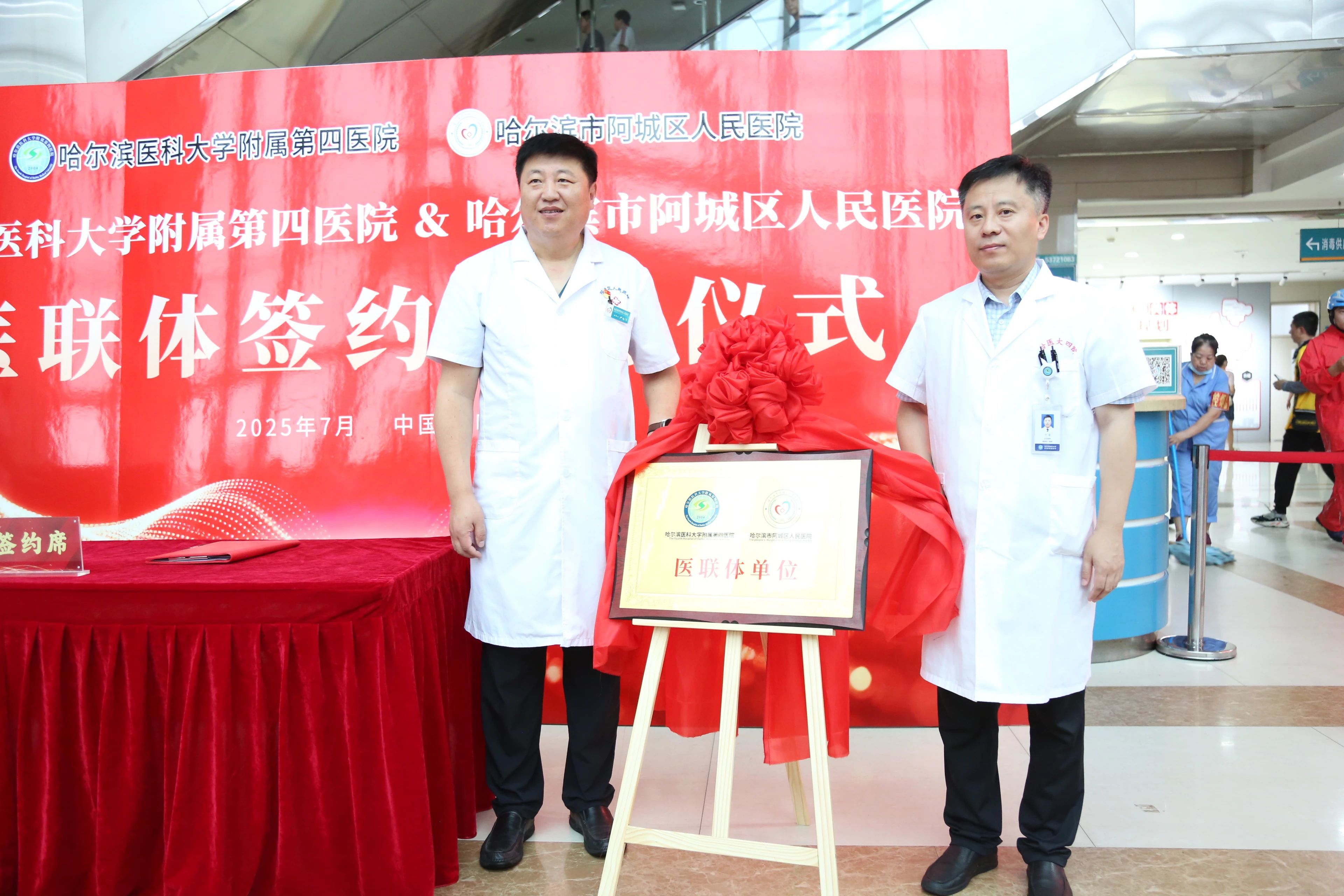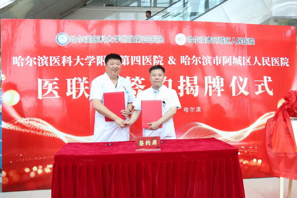 哈医大四院副院长于雷与阿城区人民医院副院长尹旭飞签订医联体医疗合作协议