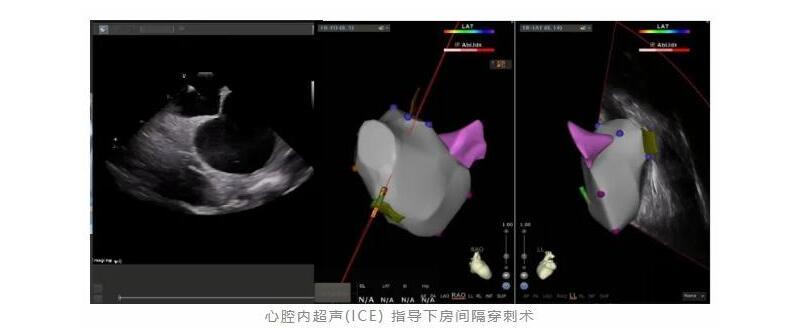 ICE(intracardiac echocardiography)即心腔内超声技术。与传统体外超声诊断技术不同,心腔内超声技术是将一根圆珠笔芯粗细的超声导管,通过外周血管置于心腔内,利用位于导管头端的超声探头,近距离、实时精准获取心脏解剖结构,并可以同步显示心脏血流动力学,实时动态评估局部心肌和整体心脏功能。近年来,在心脏介入治疗和电生理检查中,显示出良好的应用前景。心腔内超声就像医生安在心脏内的一双眼睛,医生可以通过超声图像“直视”心脏结构,并结合三维解剖标测系统构建出心脏模型,更快更好更安全地完成心脏手术。ICE具有操作灵活、精准安全、无需全身麻醉、无食管损伤、无需使用造影剂和显著减少X线暴露时间等优点,在房颤消融手术中主要应用于探查心腔内血栓、引导房间隔穿刺、精准定位消融导管及监测术中并发症等方面,大大优化了手术流程、提高了手术安全性。