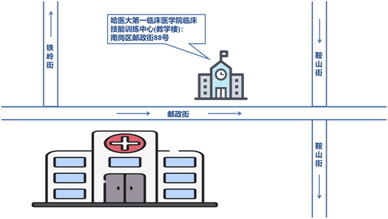 图四:哈尔滨医科大学第一临床医学院临床技能训练中心(教学楼)位置