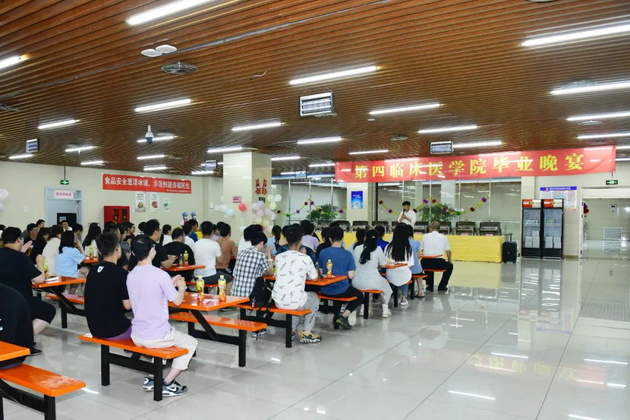 哈医大四院党委书记郭松、院长刘明、党委副书记赵羽、副院长于雷出席毕业晚宴,学院领导、团委、教务科、学生科、研究生科老师与即将离校的2023届毕业生齐聚一堂。
