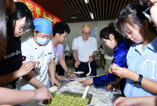 俗话说“上车饺子下车面”,饺子不仅象征着团圆,也是离别相送时的美好祝愿。院领导与师生共同包饺子,一张张面皮包含着不舍与留恋,一只只饺子凝结着深情的祝福。