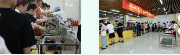 晚宴正式开始,同学们依次有序排队挑选菜品。