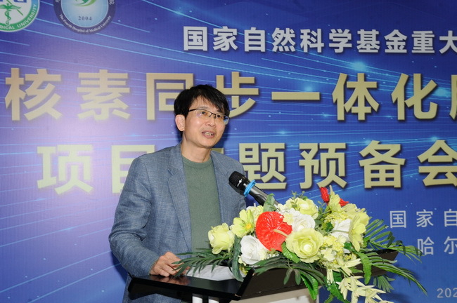 季勇校长代表项目主持单位首先致辞,他在讲话中指出,重大仪器研发是哈尔滨医科大学重点支持的项目,学校从上至下通力协作,在人力、物力、财力等各个方面,全力保障并监管项目顺利实施。感谢为项目提供支持和帮助的各级部门及各位专家,期望在基金委的领导下、专家们中肯意见的指导下、学校的帮助下,于明年年初顺利完成大仪器项目的完美结题验收。