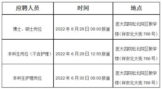 注:本科生管理岗位应聘人员于2022年6月29日下午先进行行政能力笔试随后进行面试。护理岗位应聘人员于2022年6月30日上午先进行笔试随后进行面试。