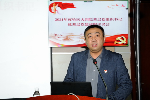 为全面贯彻落实习近平新时代中国特色社会主义思想和党的十九届六中全会精神,落实新时代党的组织路线,扎实推进党支部标准化、规范化建设,持续推进哈医大四院年度党建重点任务落实,以高质量党建引领高质量发展,按照学校党委统一部署,12月25日,哈医大四院召开2021年度基层党支部书记述职评议大会。