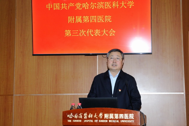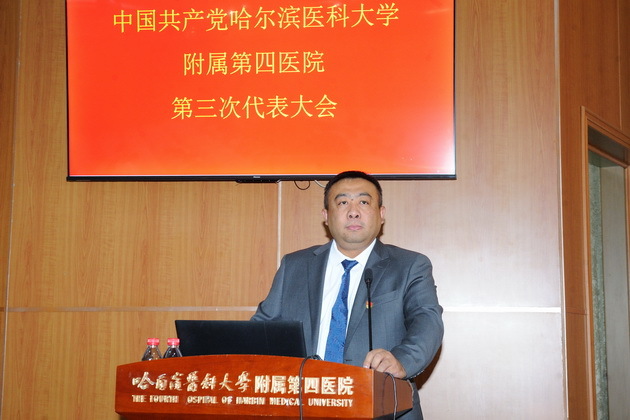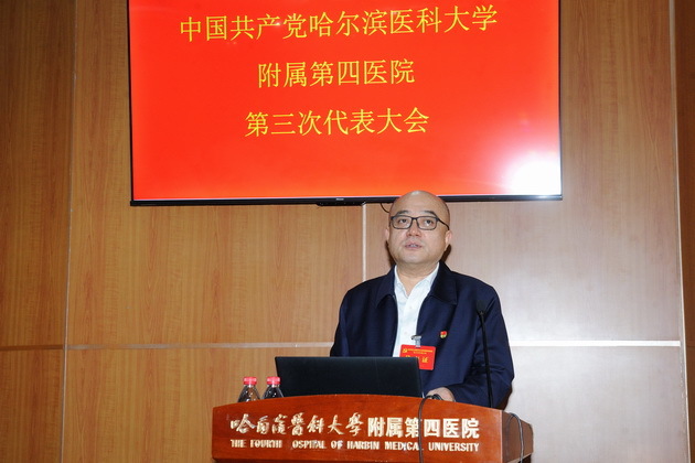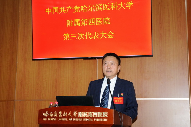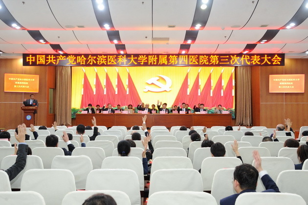 11月25日,中国共产党哈尔滨医科大学附属第四医院第三次代表大会在医院12楼大会议室胜利召开。此次大会听取并审议了党委书记郭松作的题为《奋楫扬帆 干字当头 奋力谱写四院的美好篇章》的党委工作报告,审议了中共哈医大四院纪委工作报告,选举并产生了中共哈医大四院第三届党委委员和纪律检查委员会委员。