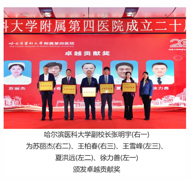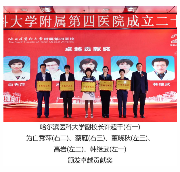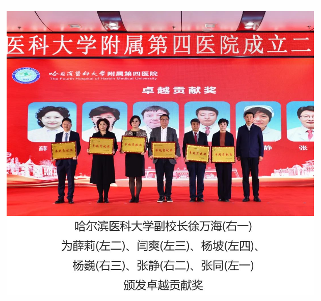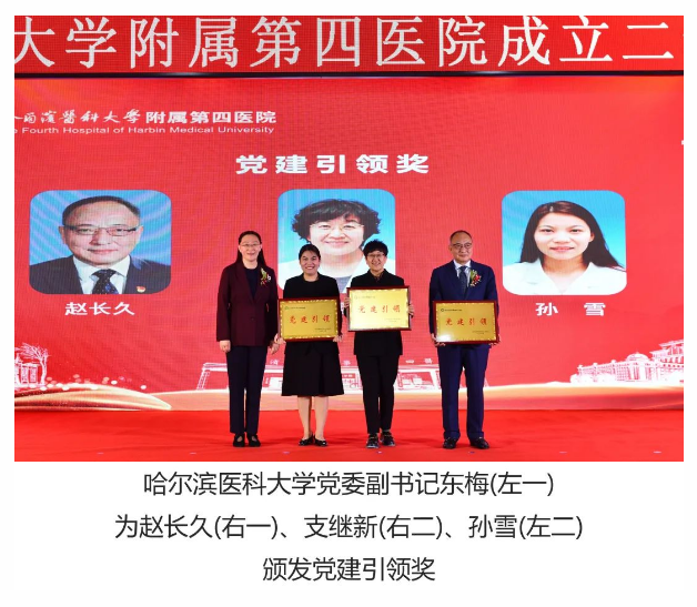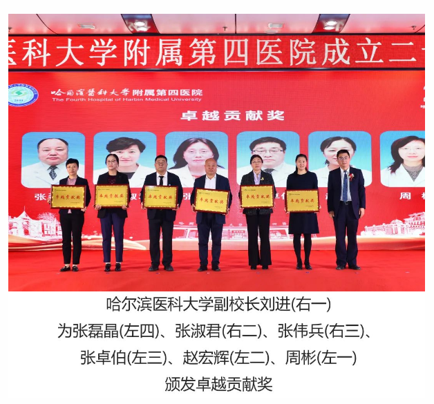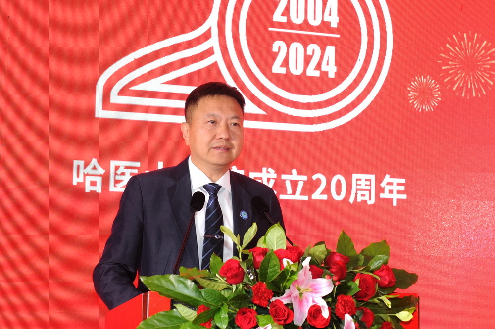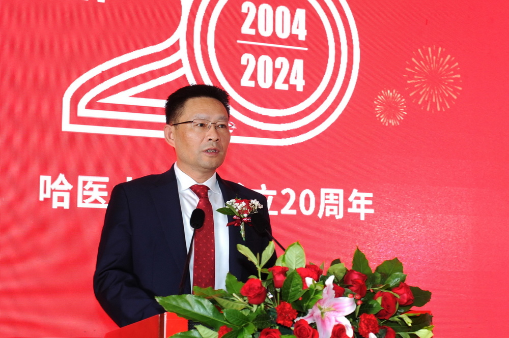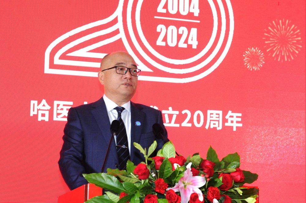 中国工程院院士、哈尔滨医科大学党委书记张学在讲话中表示,回望四院二十年的奋斗历程,无论是在艰苦创业年代,还是在发展建设时期,四院人都展现出无畏艰难的精神风貌和救死扶伤的崇高医德。近年来,四院党委在学校党委领导下,努力践行“坚持为学生学者办学立校,坚定以学术学风兴学强校”的办学理念,医疗、教学、科研各项工作稳步前进。他指出,四院要紧紧围绕高质量发展的时代主题,希望全院员工继续发扬团结拼搏、开拓创新的精神,不断提升医疗服务质量,加强人才队伍建设,深化医院改革发展,通力配合、上下齐心,努力打造“专科有特色、专家有特长、科室有文化、教授有文采、主任有情怀、医护有情操”的医院文化,形成“医者有仁心、师者有操守、学者有风骨”的良好氛围,为实现学校“双一流”建设和百年医学强校的奋斗目标,为医疗卫生事业的繁荣作出新的更大贡献。