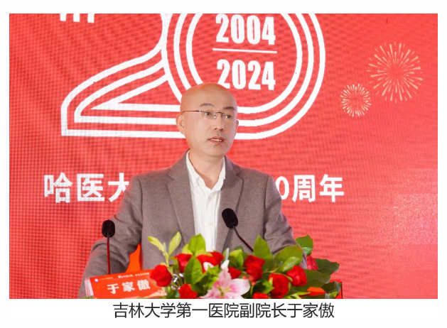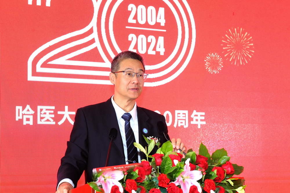 哈尔滨医科大学校长季勇在讲话中表示,四院二十年来在学科建设、人才培养、医疗服务、科学研究等各个领域取得了较好成绩,对四院人脚踏实地、真抓实干的拼搏精神表示赞赏。二十年的风雨兼程,二十年的不懈奋斗,四院为学校百年医学强校奋斗目标添砖加瓦。如今,四院站在了更高、更快、更强发展的新征程,迎来了高质量发展的关键时刻,他对医院未来发展提出了殷切期望,希望哈医大四院深入学习贯彻落实党的二十届三中全会精神,认真贯彻落实习近平总书记在全国教育大会上的重要讲话精神,以建院20周年为新起点,紧紧围绕立德树人这个根本任务,实施健康优先发展战略,深化以公益性为导向的公立医院改革,主动融入推进医药科技创新,坚持党委领导下的院长负责制,坚持走提质增效、精细化管理、更加注重人才技术要素的高质量内涵式发展道路,为学校“双一流”建设和百年医学强校奋斗目标再建新功,为教育强国、科技强国、人才强国、健康中国建设贡献智慧和力量。