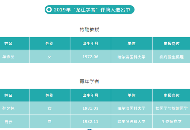 按照《“龙江学者支持计划”管理办法》(黑教规〔2019〕4号)、《黑龙江省教育厅关于2019年度龙江学者评聘工作的通知》(黑教师函〔2019〕173号)要求,经各高校报名推荐、资格审查、通讯评审和会议评审等程序,我校单宏丽被聘任为“龙江学者”特聘教授,孙夕林、肖云被聘任为“龙江学者”青年学者。来 源:黑龙江省教育厅编 辑:杨丽颖审 稿:郭芮