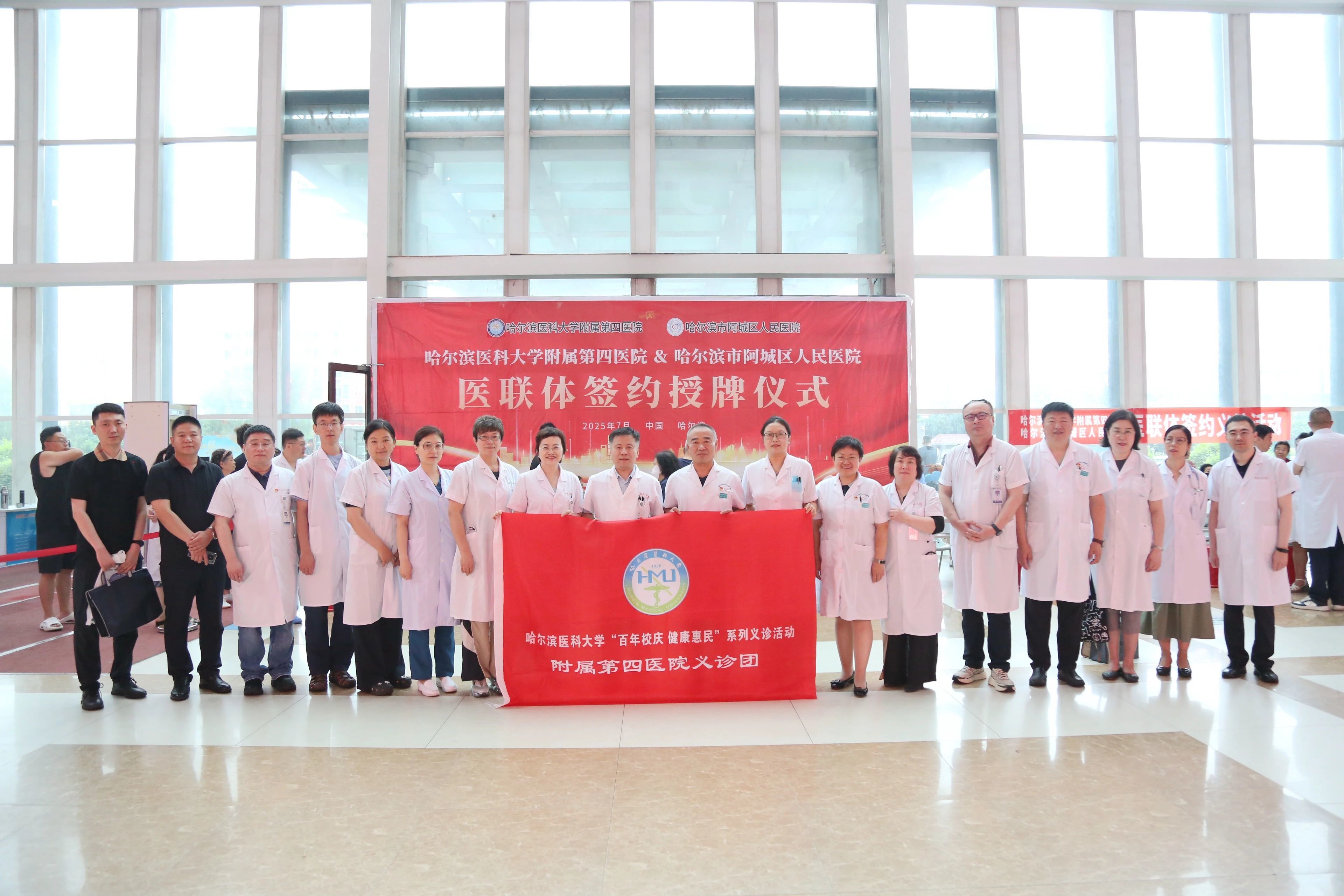 为深入推进我省医联体合作和优质医疗资源下沉,提升基层医疗卫生服务能力和医疗技术水平,满足当地群众的就医需求,2025年7月25日,哈医大四院副院长于雷带领骨干医师一行13人到阿城区人民医院,与阿城区人民医院签订医联体医疗合作协议书,并开展义诊活动。7月25日上午9:00,哈医大四院与阿城区人民医院正式签署医联体合作协议并举行授牌仪式。阿城区人民医院党委书记孙延军,院长王宪忠,副院长于金才、尹旭飞、富学慧,党委...