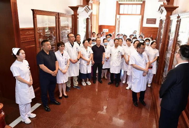 (来源:新华社客户端 哈尔滨) 7月1日电 6月30日,哈医大四院多个党支部赴哈尔滨市博物馆开展庆祝七一“弘扬建党精神,走深医护行动”主题义诊活动,36名党员参观学习、重温入党誓词,并为博物馆60余名工作人员进行义诊。此次活动由哈医大四院党委副书记赵羽带队,肿瘤内科党支部、泌尿外科党支部、骨科党支部、普外科党支部、心内科党支部、肾内科党支部、神内科党支部、内分泌科党支部、宣传团委联合党支部、绩效办党支部党...