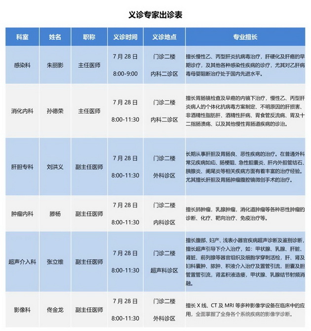 肝炎作为危害健康的常见疾病,越来越受到全社会的关注,早发现、早诊断、早治疗是避免肝炎发展成肝硬化、肝癌至关重要的策略。为帮助广大群众增强防治意识,普及肝病防控知识,哈医大四院松北院区将于2023年7月28日举办“世界肝炎日”大型义诊活动,届时感染科、消化内科、肝胆专科、肿瘤内科、超声介入科、影像科专家团队将免费为广大市民进行疾病诊疗和健康指导,活动期间免专家挂号费。义诊时间:2023年7月28日 星期五(具体...