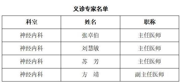 2023年10月29日是第18个“世界卒中日”,今年的主题及口号是“卒中:重在预防”。为积极推进脑卒中的防治工作,开展脑卒中防治健康教育和科普宣传,切实提高群众的卒中防治意识,提高脑卒中有效救治率和控制率,哈医大四院脑卒中中心由张卓伯教授带队,将于10月26日举办“世界卒中日”惠民义诊活动。届时,多位神经内科专家将共同为广大患者进行义诊。义诊时间:10月26日(本周四)上午9:00-10:00义诊地点:门诊一楼大